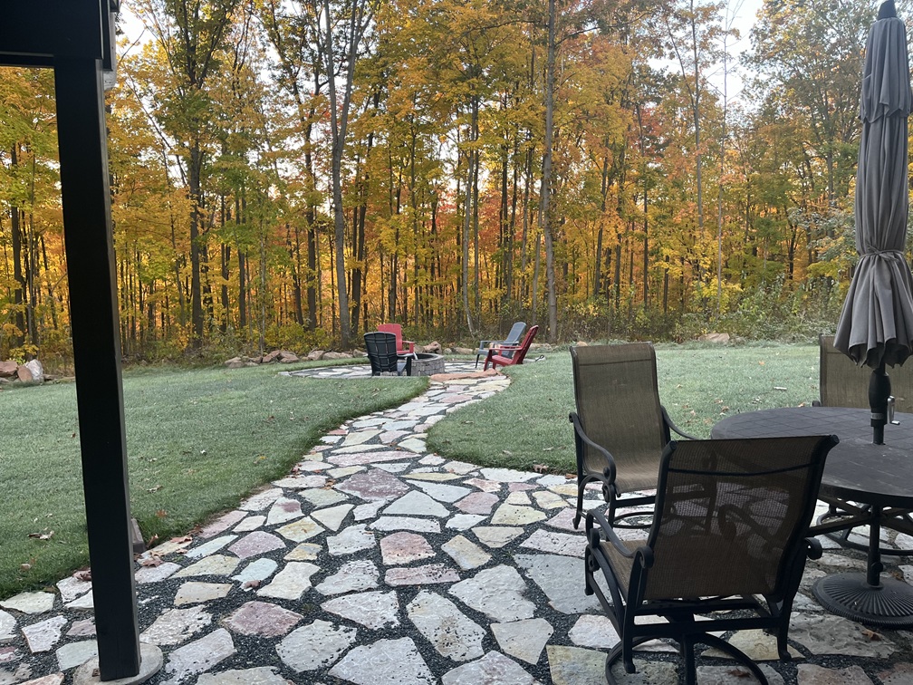 A little topsoil removal, some nice aggregate, and a few pavers really make a difference when having friends over for a campfire.